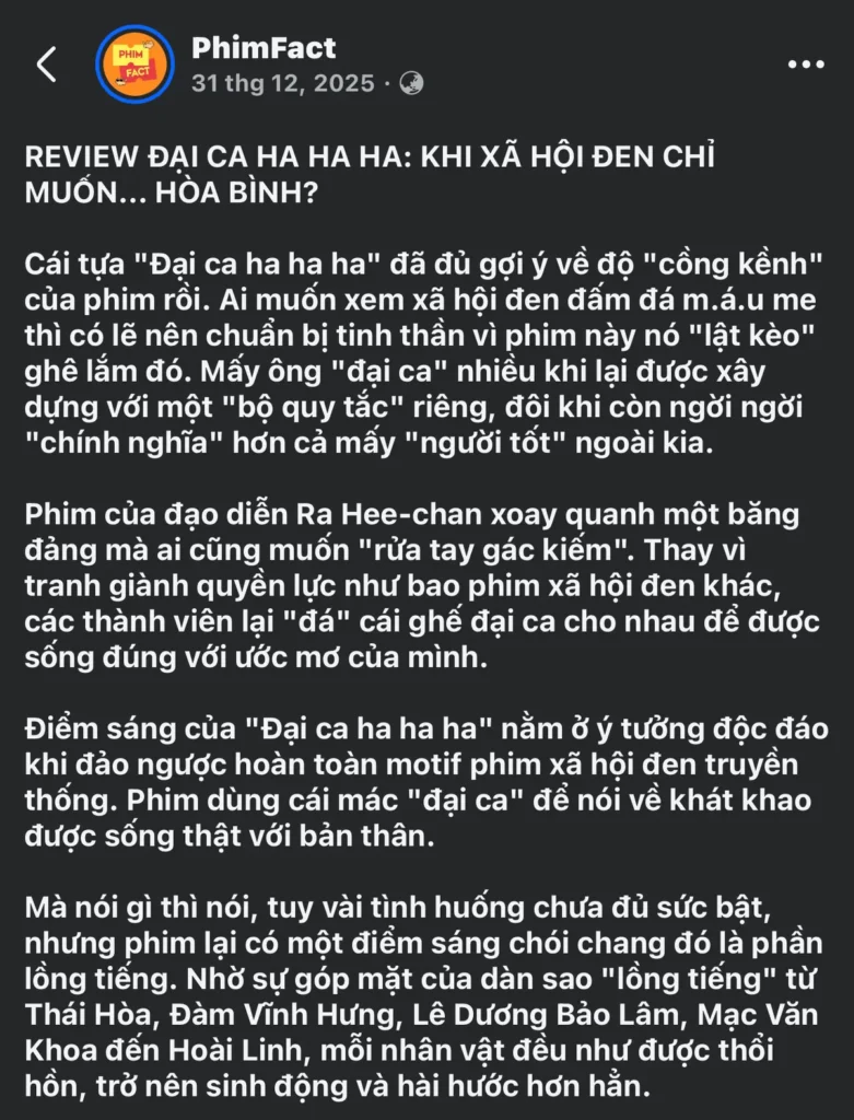 Không chỉ gây ấn tượng mạnh với phong cách độc đáo, ĐẠI CA HA HA HA còn chinh phục trái tim khán giả Việt. Sau khi ra rạp, bộ phim nhận về vô vàn lời khen có cánh, đạt điểm số ấn tượng 8/10 trên ứng dụng MoMo.