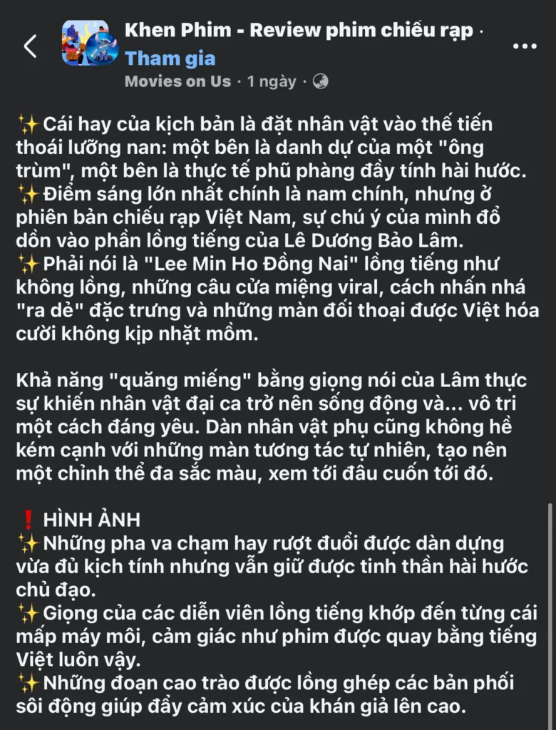 Đặc biệt, phần lồng tiếng Việt của phim được đánh giá cực kỳ xuất sắc với sự góp mặt của Lê Dương Bảo Lâm. Giọng điệu và cách “quăng miếng” duyên dáng của anh đã giúp:
