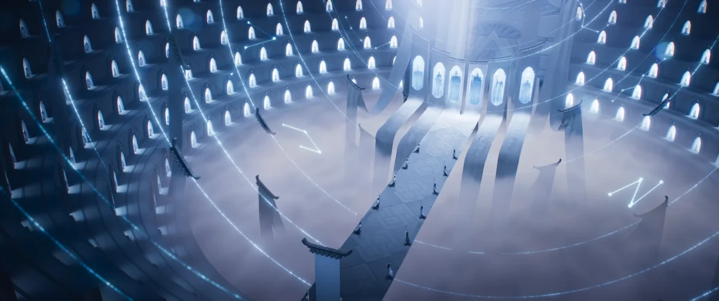 Trong khi đó, chốn phàm trần lại được thiết kế dựa trên vẻ đẹp của thành phố Trùng Khánh, kết hợp cùng tư liệu lịch sử từ bức tranh nổi tiếng “Thanh Minh Thượng Hà Đồ”. Điều này giúp tái hiện một cách chân thực và sống động sự nhộn nhịp của phố phường, con người và những bộ môn nghệ thuật dân gian như võ thuật, múa rồng, múa lân truyền thống.