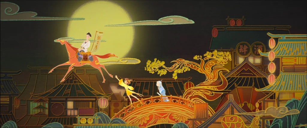 Sự tinh tế này còn được ê-kíp tận dụng để tôn vinh nghề dệt lụa truyền thống – một di sản văn hóa được UNESCO công nhận. Nhờ đó, khán giả được chiêm ngưỡng những khung hình thơ mộng, huyền ảo, như lạc vào một thế giới thần bí đầy mê hoặc. Đặc biệt, sự phối hợp linh hoạt giữa hoạt hình 2D truyền thống và 3D hiện đại mang đến trải nghiệm thị giác vô cùng đa dạng và độc đáo. Bạn sẽ ngỡ ngàng khi thấy múa rối bóng và nghệ thuật thêu thùa được tái hiện sống động, hay những dải tranh lụa đầy ấn tượng kể lại tình yêu Ngưu Lang – Chức Nữ.