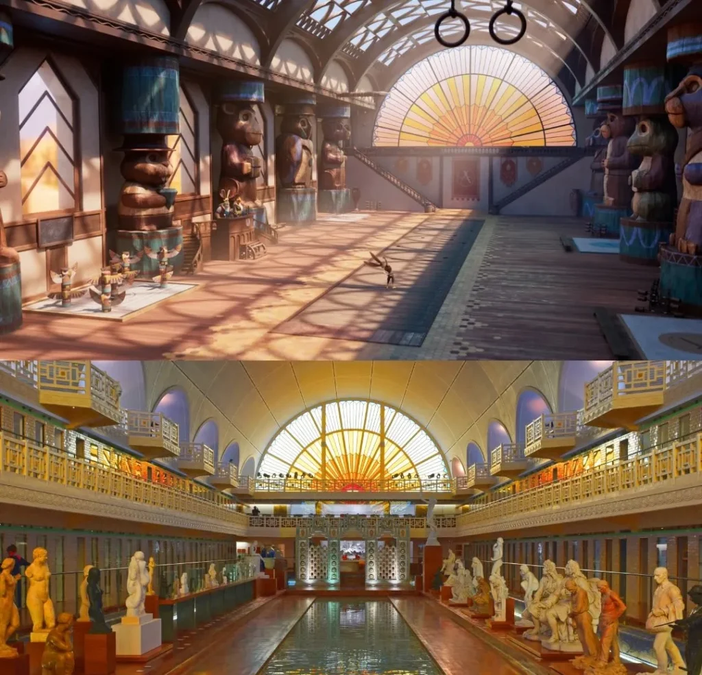 Bộ phim đã biến Les Hospices de Beaune thành một ngôi làng cổ tích ấm áp, nơi cư ngụ của đông đảo cư dân muông thú. Từ mái ngói rực rỡ đến quảng trường rộng lớn, mọi chi tiết đều được tái hiện sống động, tôn vinh vẻ đẹp kiến trúc cổ điển của vùng Burgundy ngay trên khung hình hoạt hình.