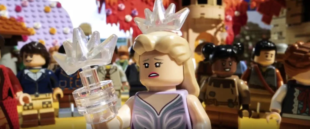 Ngay từ những giây đầu tiên, phiên bản Lego của hai nữ phù thủy Elphaba và Glinda đã xuất hiện, đưa chúng ta vào không khí vừa lộng lẫy vừa có chút u ám của phần phim sắp tới. Giữa tòa lâu đài tráng lệ, Glinda đặt ra một câu hỏi xoáy sâu vào tâm lý nhân vật và cũng là chủ đề chính của phần phim: “Có phải con người sinh ra đã xấu xa? Hay cái xấu mới là thứ đã thúc ép họ?”. Đây không chỉ là một câu hỏi tu từ, mà còn là lời gợi mở cho hồi kết của vũ trụ WICKED, nơi số phận của cả xứ Oz nằm trong tay hai người bạn từng thân.
